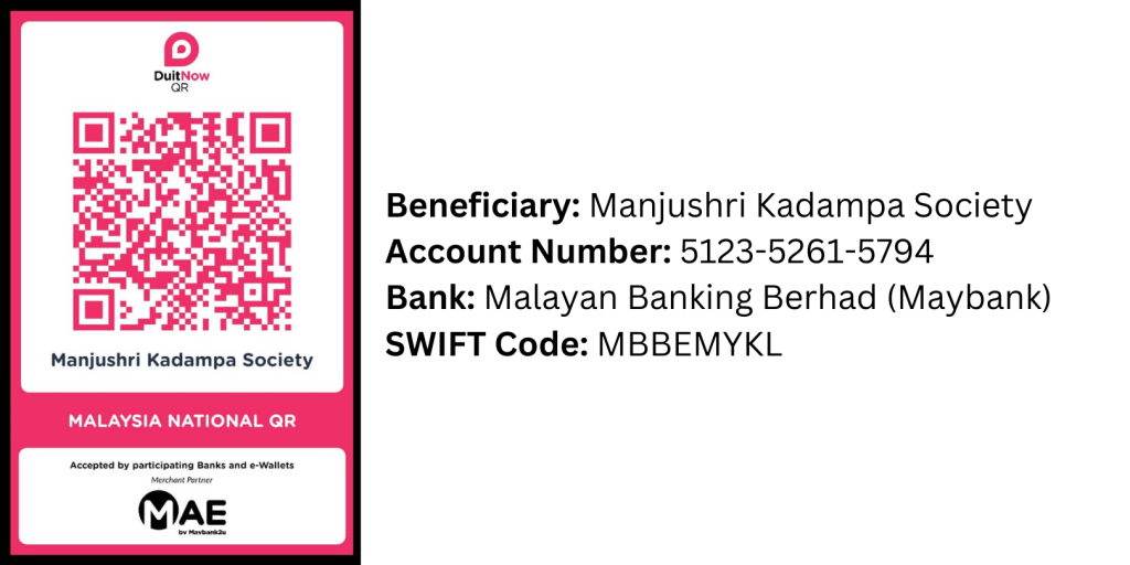 Manjushri Kadampa Buddhist Centre (MKBC) is a non-profit organisation dedicated to helping the people of Kuala Lumpur find inner peace and improve their quality of life. Your support allows us to continue sharing Buddha’s wisdom and offering a peaceful space for everyone to benefit. By contributing, you’re directly helping to spread wisdom and compassion in our community.